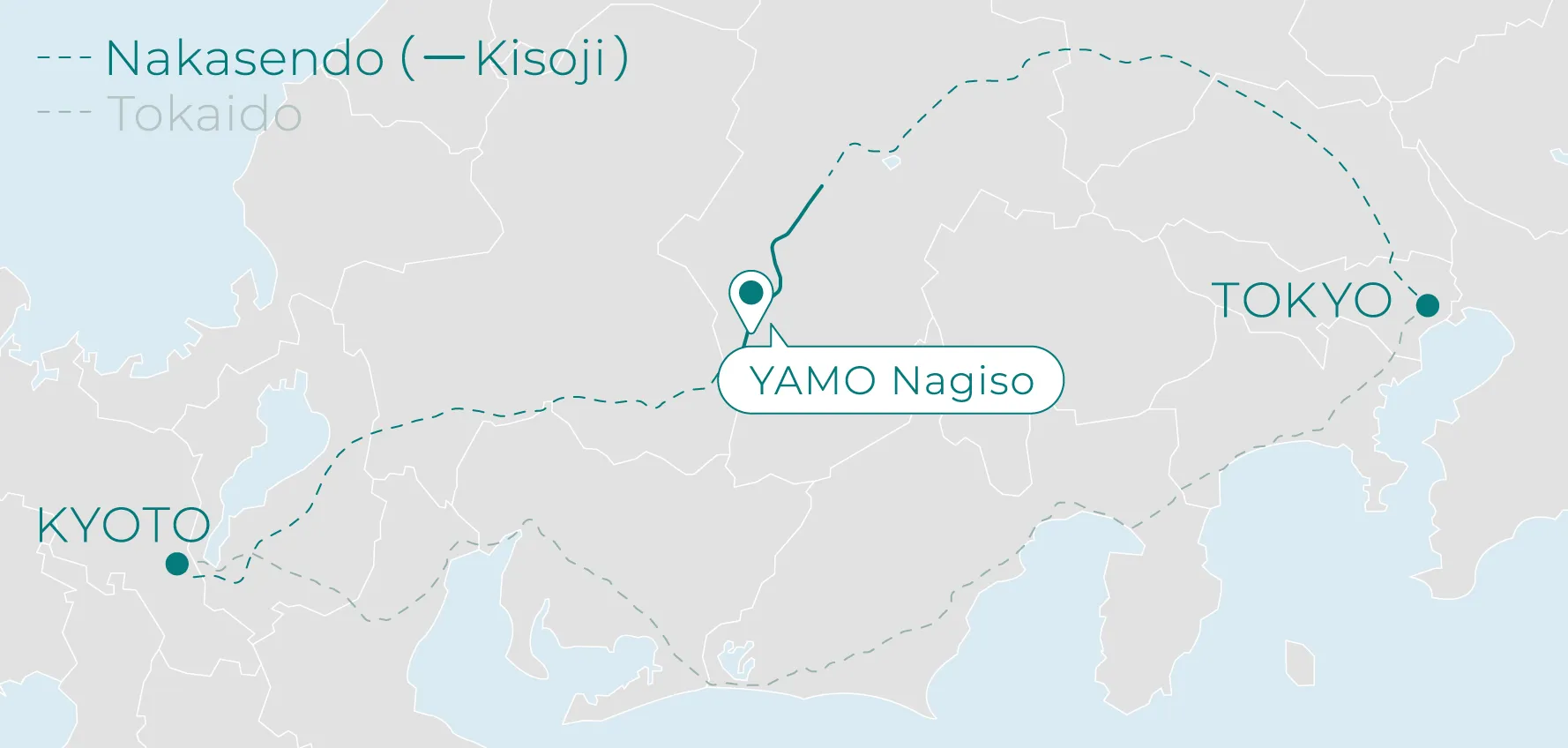 Nagoya IC → (60 min via Tomei & Chuo Expressways) → Nakatsugawa IC → (30 min via Route 19) → Nagiso Town → YAMO Nagiso