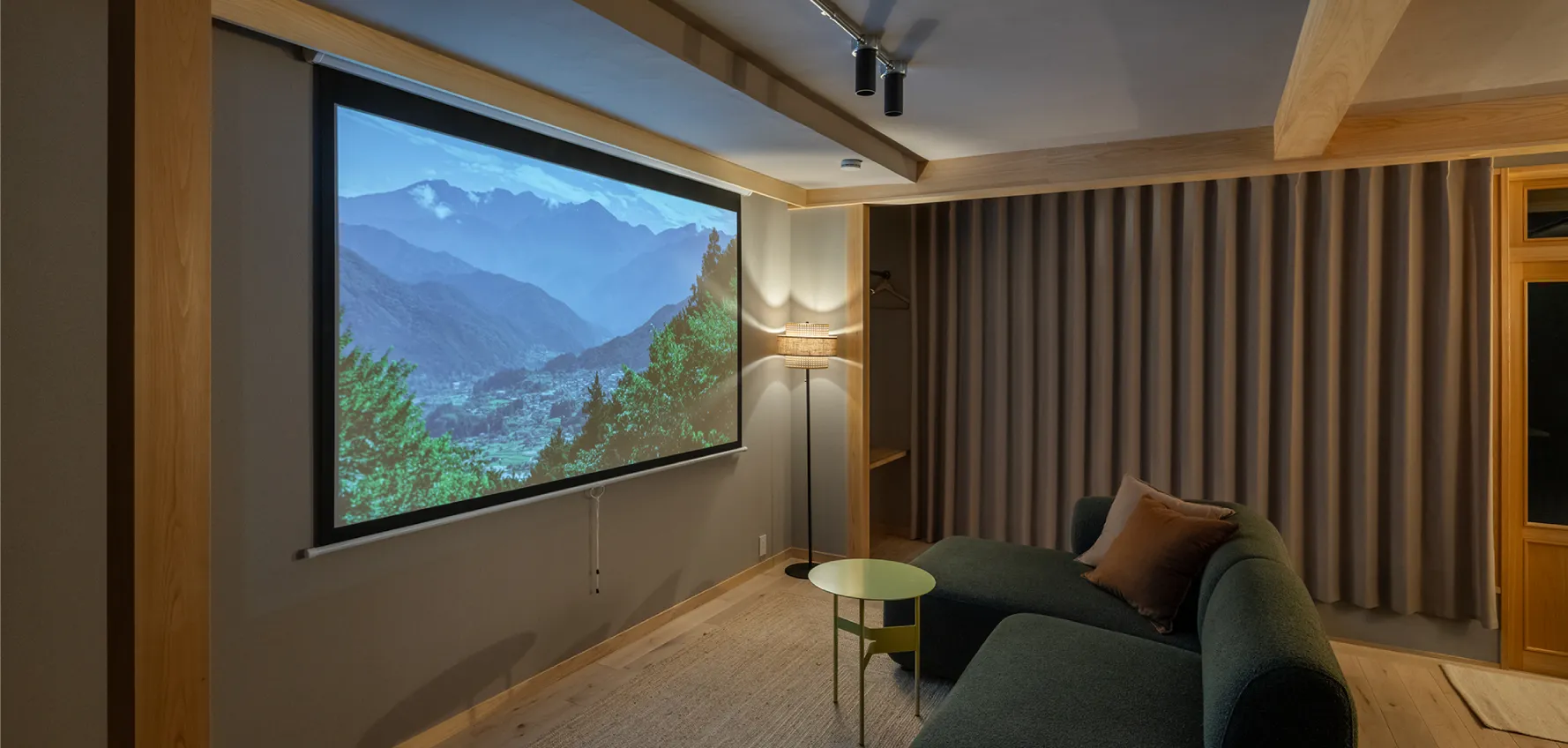 100インチのスクリーンと高画質プロジェクターを備えた、映画鑑賞にぴったりの空間。Bluetoothスピーカーと連携すれば、旅先ならではの特別なシアタータイムをご体験いただけます。