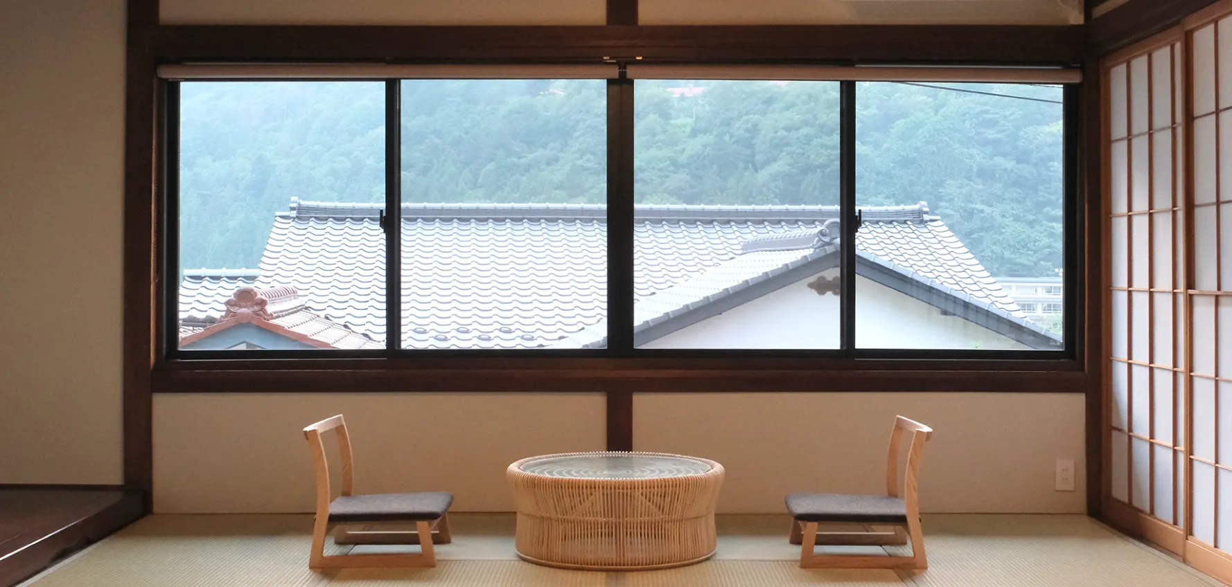 窓辺の座椅子から眺めるのは、木曽川がかたちづくる木曽谷の柔らかな稜線。静かな時間の中で、視線と共に心まで解きほぐれるような場所です。