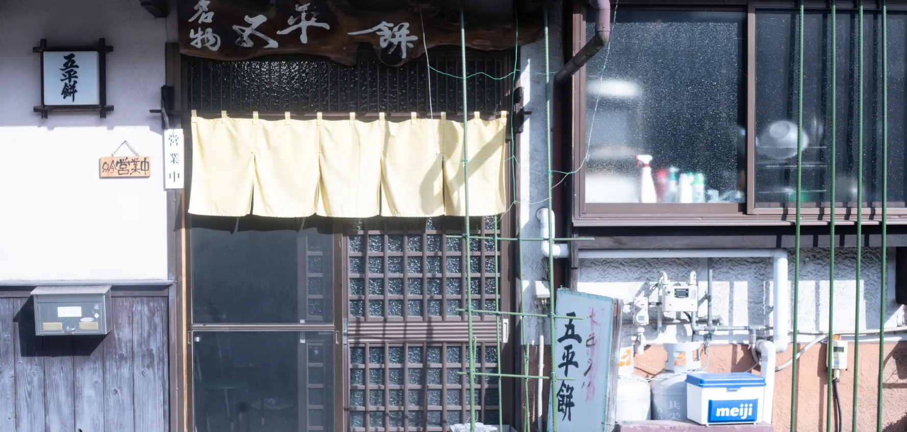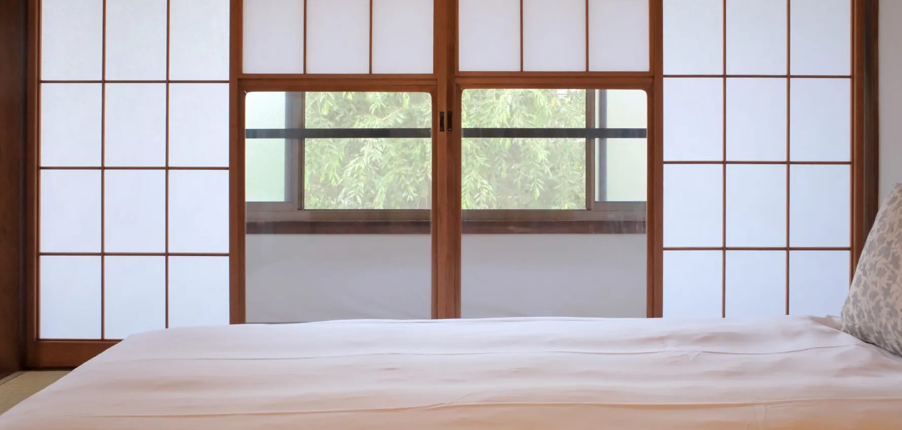 ヒノキを扱う大きな材木商が元家主だったこともあり、贅沢な建具が残されています。そっと障子を上げると現れるガラス面は、プライバシーを保ちつつやわらかな光を取り込む、機能と美を兼ね備えた意匠です。