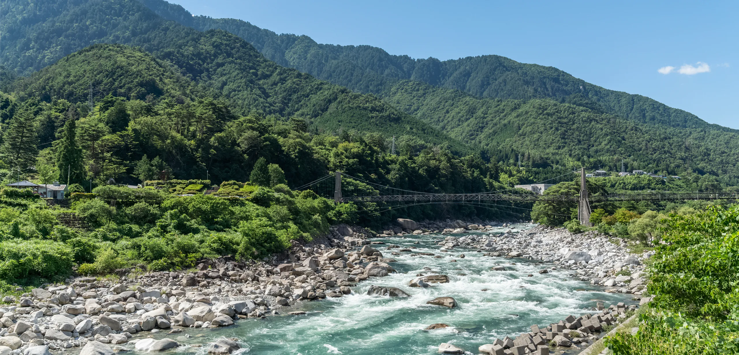 エメラルドグリーンの清流と美しい渓谷美を誇る、南木曽の人気スポット・阿寺渓谷。 車で約15分の場所にあり、川沿いの散策や夏の水遊びなど、季節ごとの楽しみが広がります。