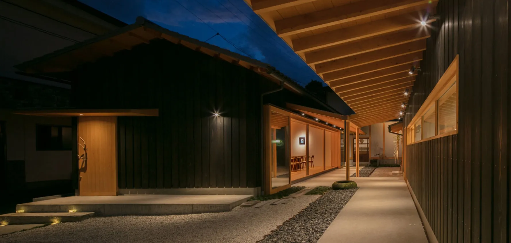 看板や提灯などの宿場町らしさを意識して、温かな灯りのあるサインを取り付けました。通りを歩く旅人をそっとお迎えします。