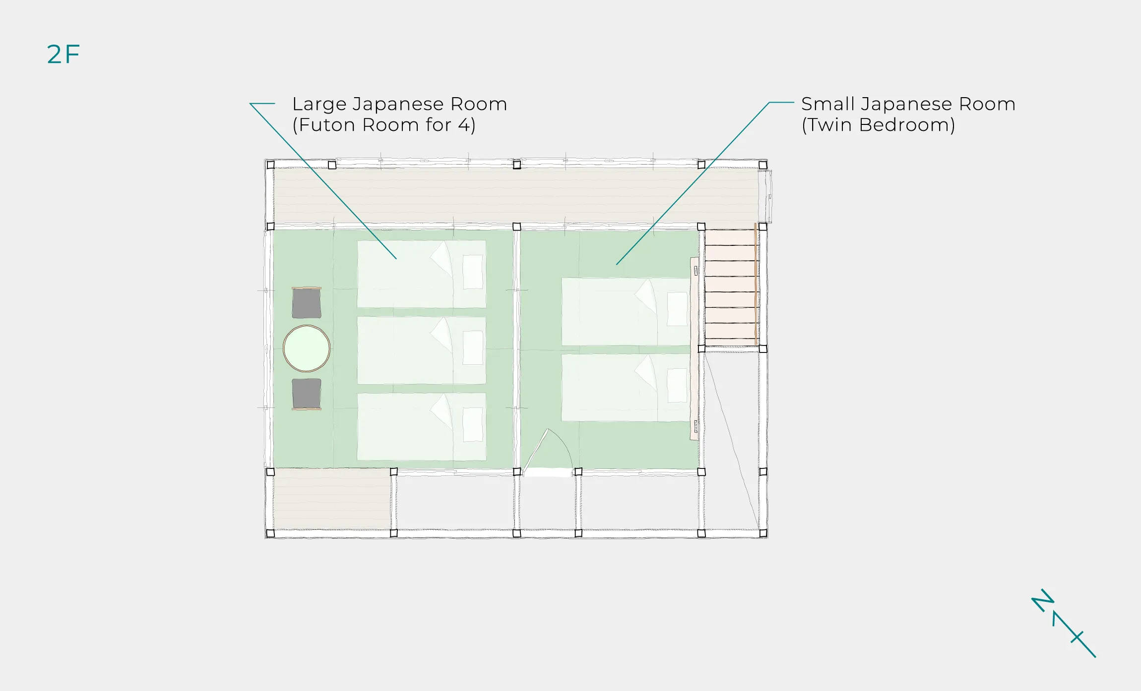 面積 : 室内 97㎡ / 収容人数 : 最大8名